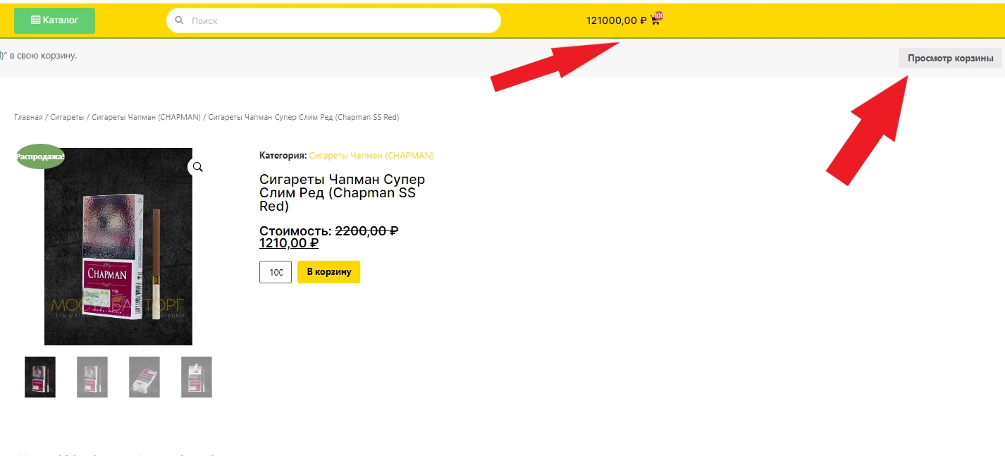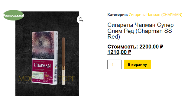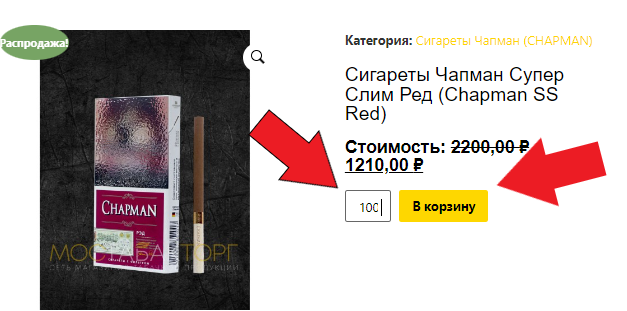 1. Выберите нужные сигареты. Если вы видите товар на сайте значит он есть в наличии ассортимент перед вами на сайте. Возьмём в пример если вы остановились на Чапман Супер Слим Ред. Очень хороший выбор! И сейчас мы с Вами закажем данные сигареты мелким оптом с доставкой на дом!