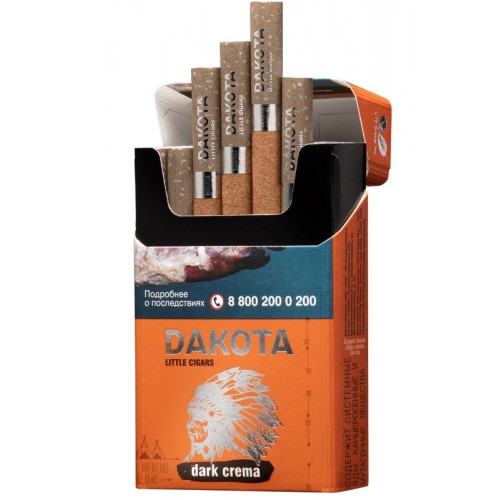 Любителям изысканных вкусов предлагаем сигареты Dakota Dark Crema – неповторимое сочетание шоколада и бренди, которое никого не оставит равнодушным. Эти сигареты формата King Size созданы на основе табачной мешки премиум-качества и отличаются легкими характеристиками: смолы – 7 мг, никотина – 0,6 мг.