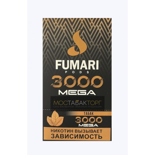 Купить одноразовую электронная сигарета Фумари Мега 3000 Табак (Fumari Pods 3000 Mega) в Москве вы можете в сети наших розничных магазинов или оформив заказ на нашем сайте