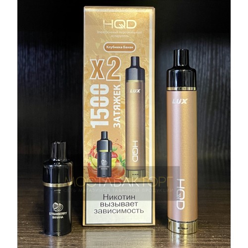 Электронная сигарета HQD LUX в комплекте с 2 картриджами со вкусом Клубника Банан на 1500 затяжек.