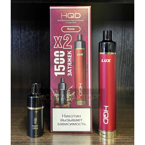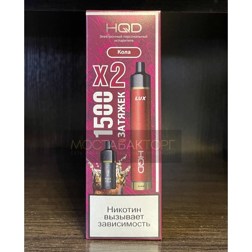 Электронная сигарета HQD LUX в комплекте с 2 картриджами со вкусом Кола на 1500 затяжек.