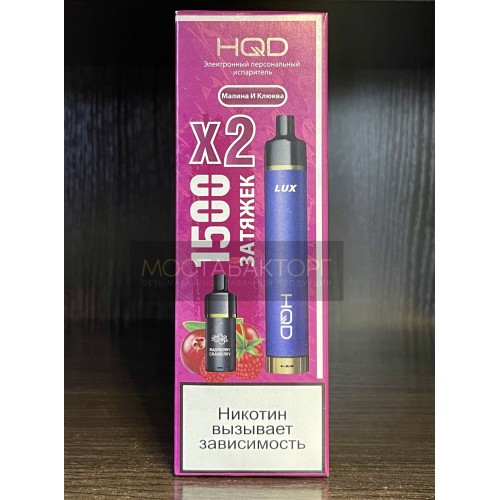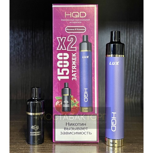 Электронная сигарета HQD LUX в комплекте с 2 картриджами со вкусом Малина Клюква на 1500 затяжек.