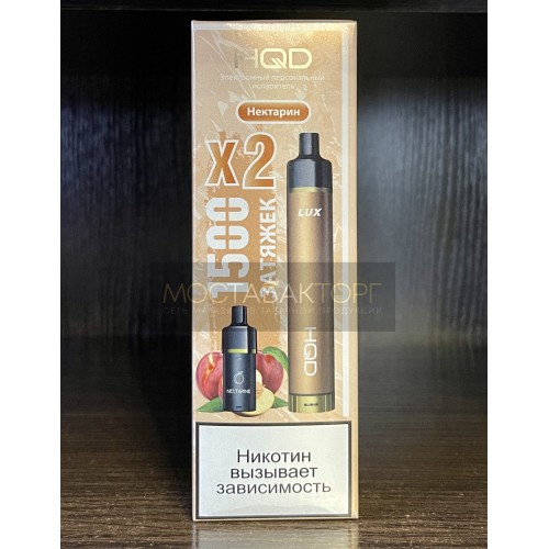 Электронная сигарета HQD LUX в комплекте с 2 картриджами со вкусом Нектарин на 1500 затяжек.