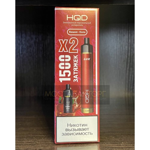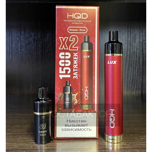 Электронная сигарета HQD LUX в комплекте с 2 картриджами со вкусом Вишня Кола на 1500 затяжек.