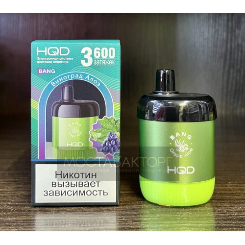 Купить одноразовую электронную сигарету HQD Bang Grape Aloe (hqd Бенг Виноград Алоэ) в Москве вы можете в сети наших розничных магазинов или оформив заказ на нашем сайте