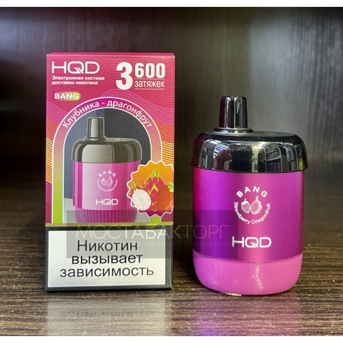 Купить одноразовую электронную сигарету HQD Bang Strawberry Dragonfruit (hqd Бенг Клубника Драгонфрут) в Москве вы можете в сети наших розничных магазинов или оформив заказ на нашем сайте