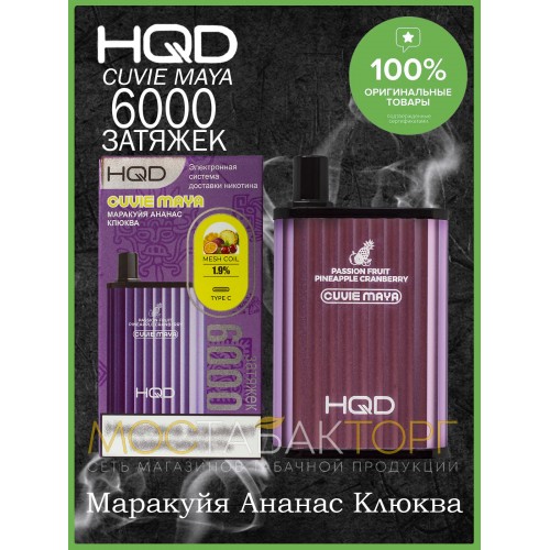 Купить одноразовую электронную сигарету HQD Cuvie MAYA Passion Fruit Pineapple Cranberry (hqd Куви Мая Маракуйя Ананас Клюква) в Москве вы можете в сети наших розничных магазинов или оформив заказ на нашем сайте