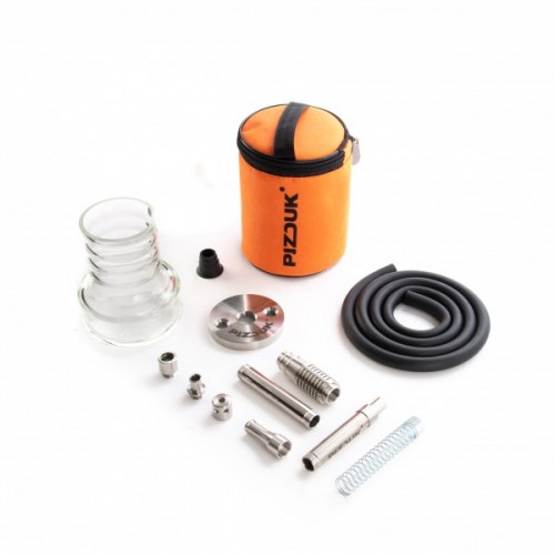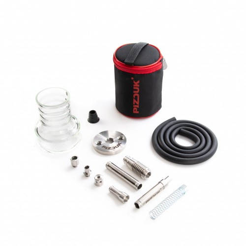 Кальян Pizduk Hookah новинка в сегменте мини кальянов. Кальяны Pizduk производятся в России. Колба выполнена из закалённого стекла, шахта сделана из нержавеющей стали и имеет высоту около 12 см. В комплекте также идёт мундштук из нержавеющей стали и шланг. Кальян Pizduk поставляется в удобной компактной сумке в которую помещается кальян в разобранном виде и его удобно взять куда угодно.