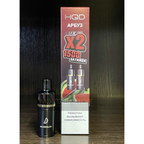 Картриджи HQD LUX Арбуз. В упаковке 2 картриджа на 1500 затяжек каждый.
