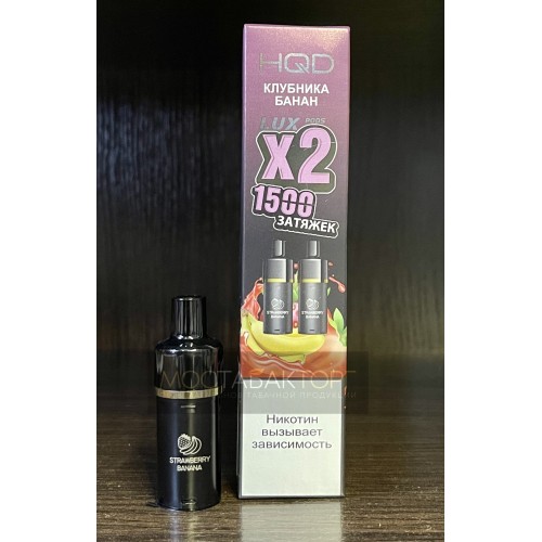 Картриджи HQD LUX Клубника Банан. В упаковке 2 картриджа на 1500 затяжек каждый.