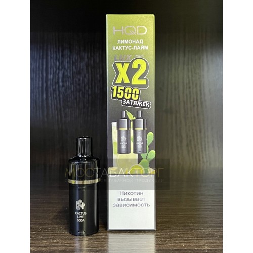 Картриджи HQD LUX Лимонад Кактус Лайм. В упаковке 2 картриджа на 1500 затяжек каждый.