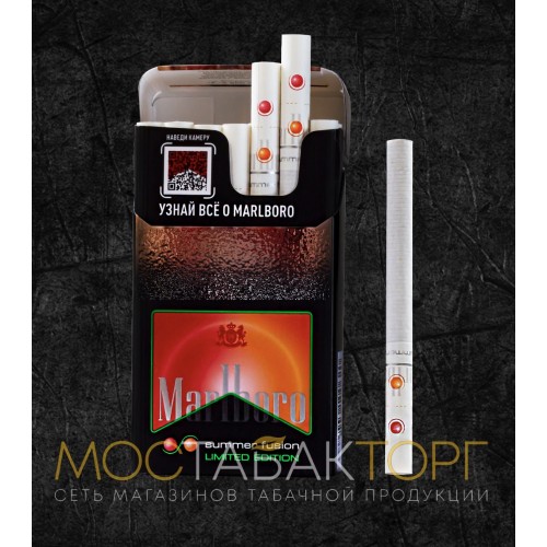 Сигареты Мальборо Самер Фьюжн, оранжевые с двумя кнопками.
