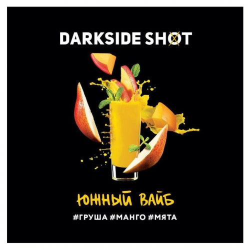 Табак для кальяна Darkside Shot Южный Вайб — экзотическая смесь груши и манго с мятным оттенком.