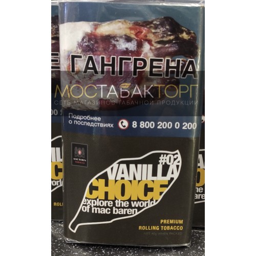 Mac Baren Vanilla Choice (Мак Барен Ваниль) табак сигаретный с насыщенным и сладковатым ароматом. Табачная смесь состоит из Вирджинии и Берлей. Тонкая нарезка табака способствует легкому «забитию» сигарет и мягкому курению. Табак средней крепости.